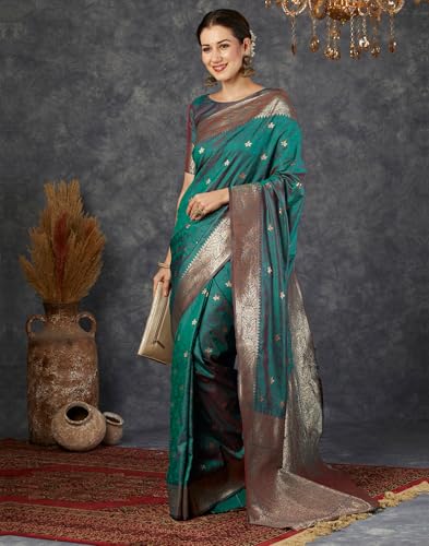 SWORNOF Women's kanjivaram banarasi silk saree for Patola festival Wedding silk with rich pallu Design sarees for women with blouse piece