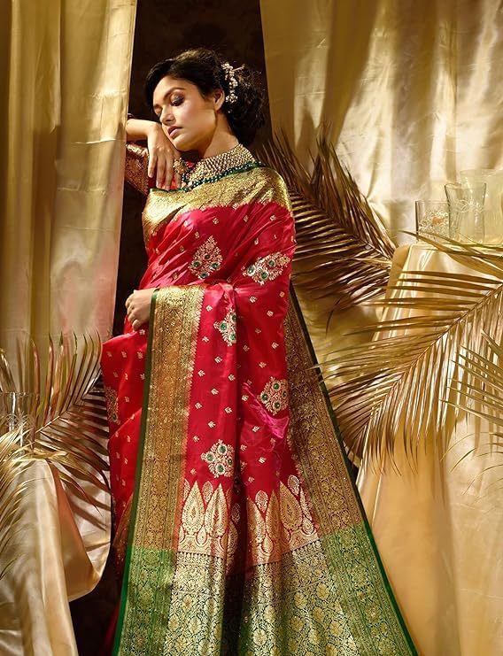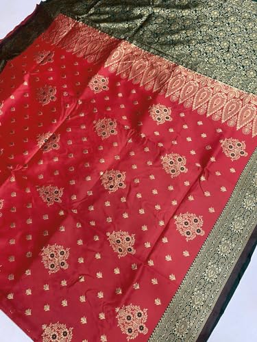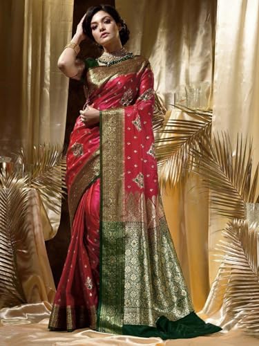 SIRIL Women's Cotton Silk Banarasi Zari Woven Jacquard Saree With Unstitched Blouse Piece