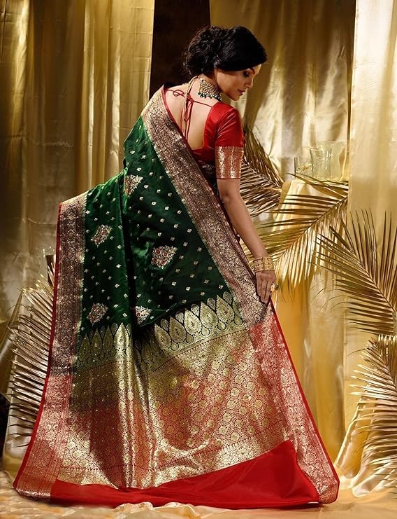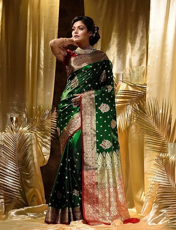 SIRIL Women's Chiffon Printed Silver Border Saree With Unstitched Blouse Piece