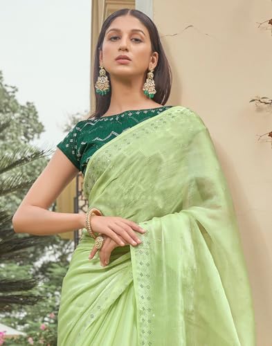 SIRIL Women's Georgette Printed Saree With Unstitched Blouse Piece Combo Pack Of 2