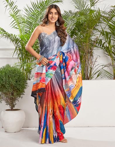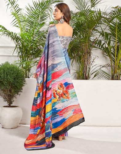 SIRIL Women's Net Sequence Embroidery Work Saree With Unstitched Blouse Piece