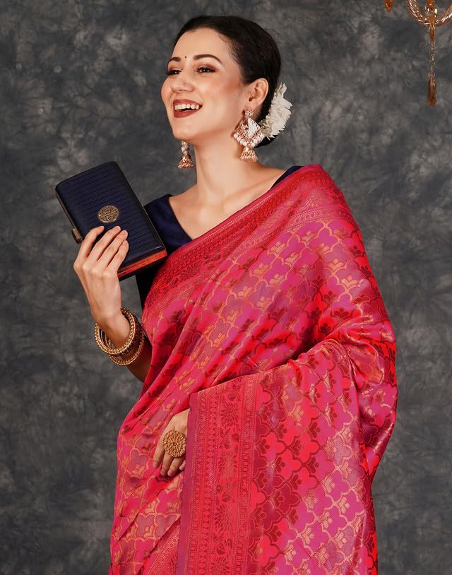 SIRIL Women's Viscose Georgette Banarasi Jacquard Saree With Unstitched Blouse Piece