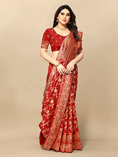 SIRIL Women's Pure Cotton Printed Saree With Unstitched Blouse Piece