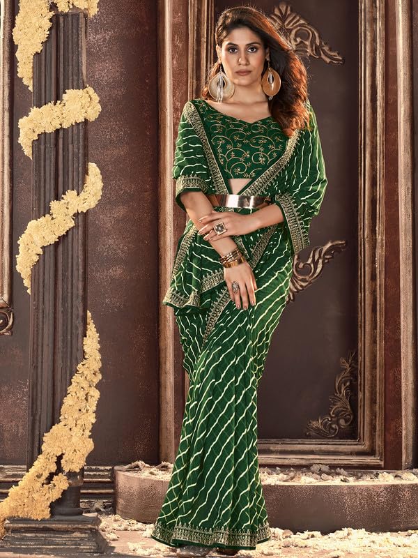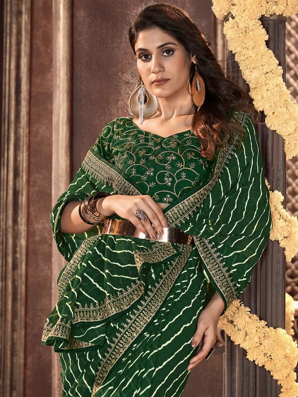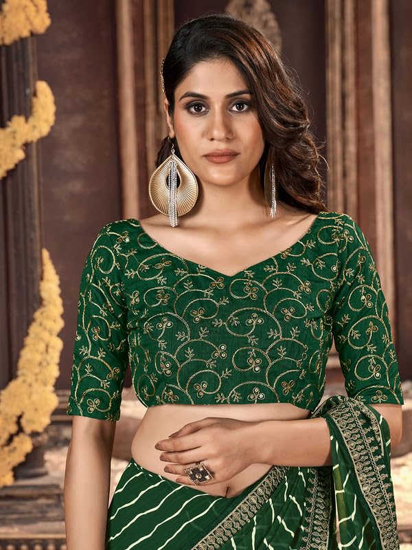 SIRIL Women's Georgette Printed Sequence Work Saree With Unstitched Blouse Piece