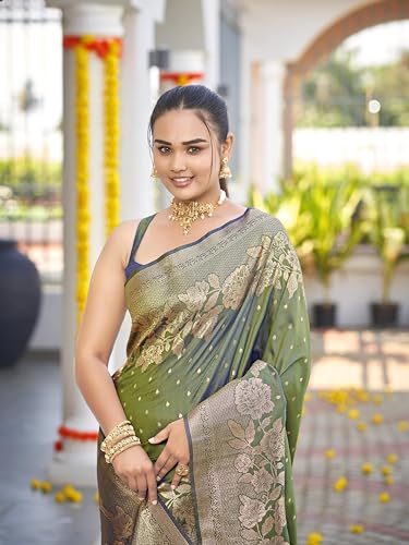 SIRIL Women's Banarasi Silk Kanjivaram Jacquard Saree With Unstitched Blouse Piece