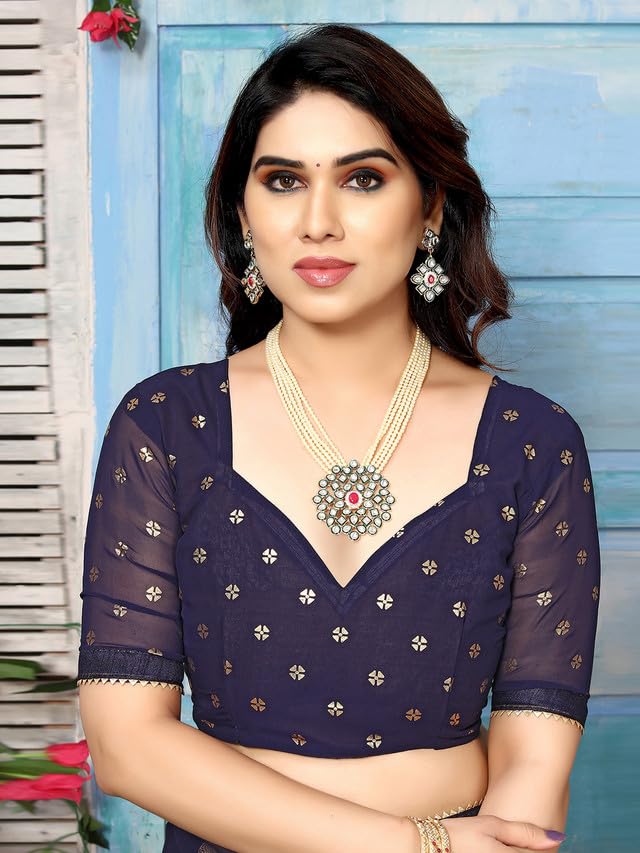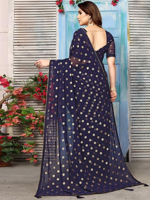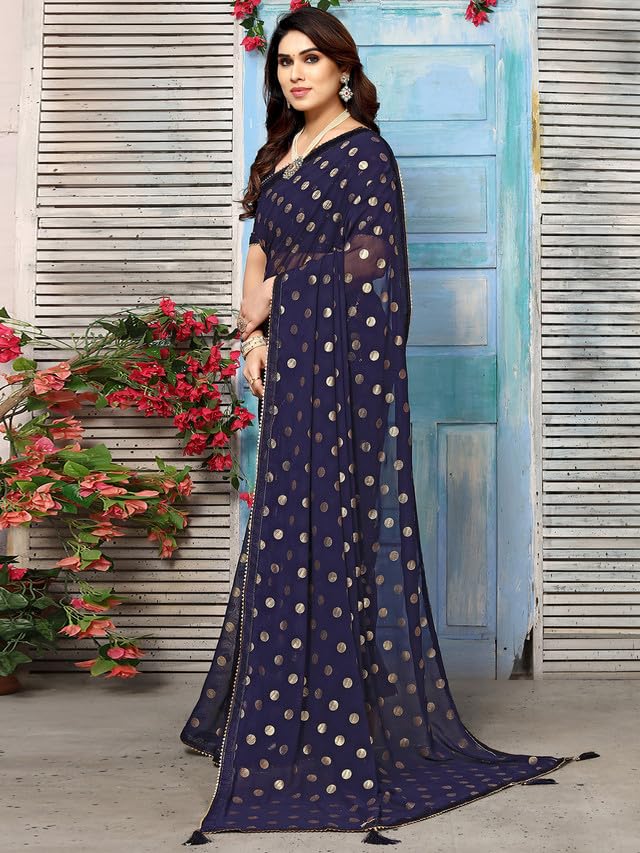 SIRIL Women's Vichitra Silk Hot Fixing Embroidery Border Saree With Unstitched Blouse Piece