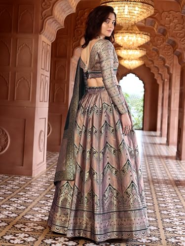 Janasya Women's Mustard Crepe Silk Digital Floral Printed Lehenga Choli With Dupatta