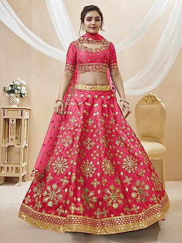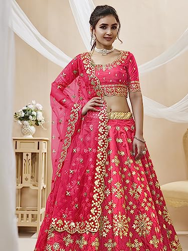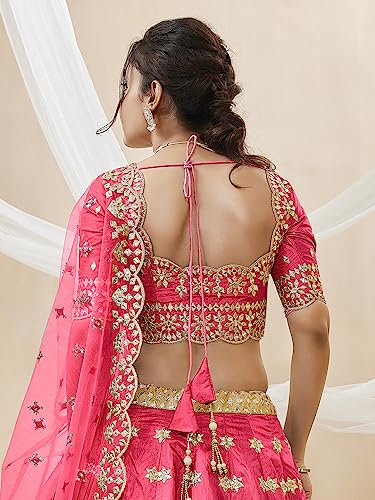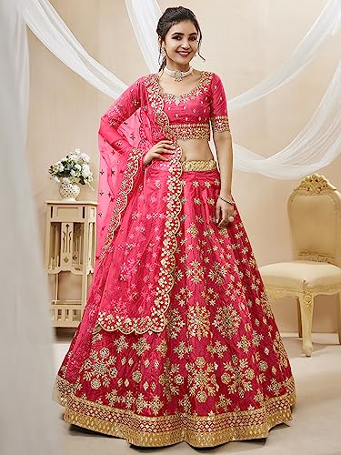 Zeel Clothing Women's Thread Sequins Work Embroidery Net Astonishing Semi-Stitched Lehenga Choli With Dupatta (2134-Pink-Wedding-Women-Lehenga-Choli-Latest; Free Size)