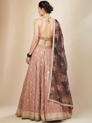 Janasya Women's Cream & Pink Pure Cotton Floral Printed Tiered Ready To Wear Lehenga Choli Set