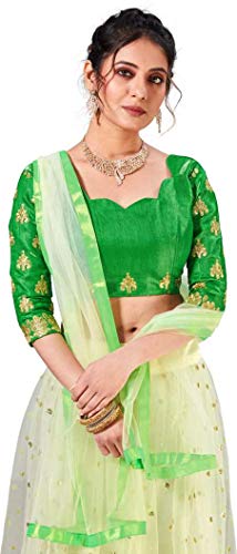 Fashion Basket Satin Printed Green Lehenga Choli For Womens (FB-LH-L8278_Green)