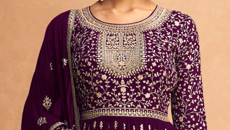 JULEE Women's Net Embroidered Semi-Stitched Gown-Aliya