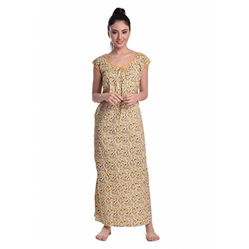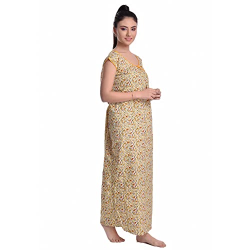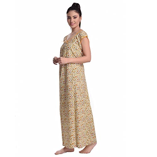 OSF Women's Printed Cotton Floral Maxi Round Neck Full Length Nightwear Night Gown Nighty (Pack of 1, NW0353)
