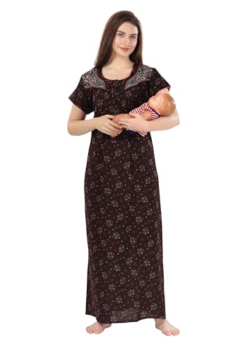 ZEYO Women's Cotton Flash Printed Feeding Relaxed Night Suit Set Of Top & Pyjama Nursing Night Dress 5338