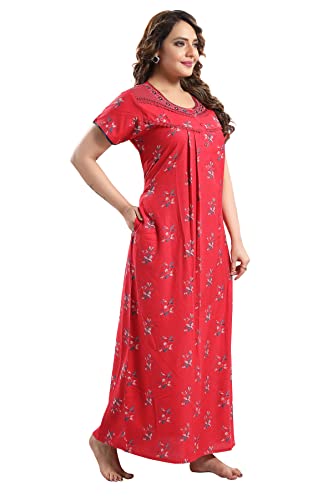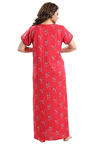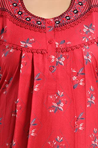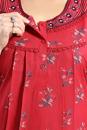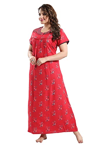 ZEYO Women's Rayon Floral Embroidery Mid Thigh Length Nighty Night gown 5678