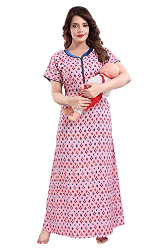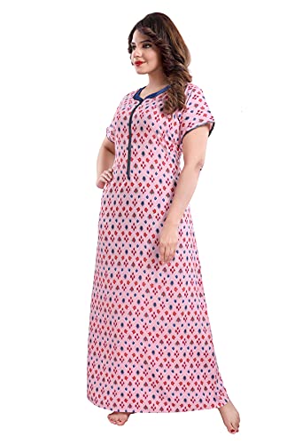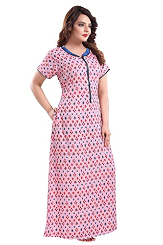 9shines Label Premium Alpine Long Nighty Nightdress |Cotton Blend Night Gown | Front Open Buttons Pleated Maxi with Pocket for Women (2467)