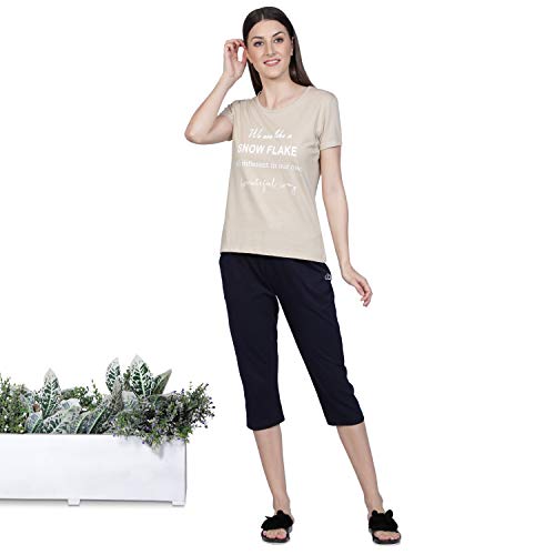 kasya Cotton Nighty for Women with Pockets | Premium Beige Printed Long Cotton Night Gown | Comfortable Maxi Dress | Fancy Sleepwear/Nightwear/Night Gown