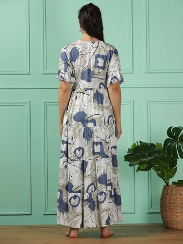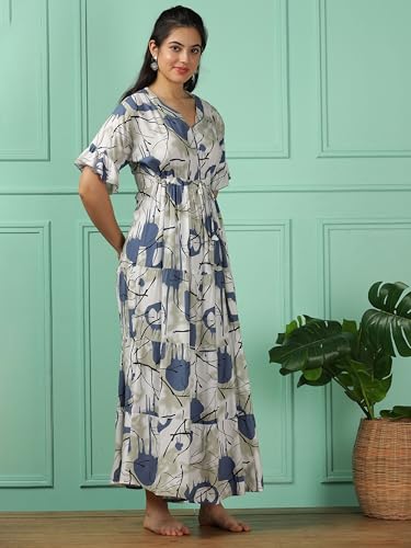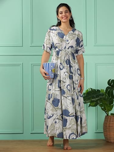 Evolove Women's Cotton Long Maxi Night Gown Nighty Dress with Pocket, Super Soft Comfortable (LNG-Cotton-2)