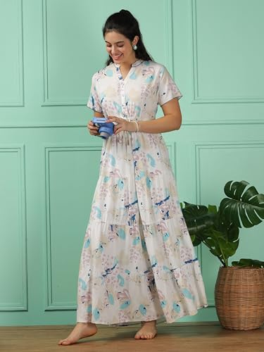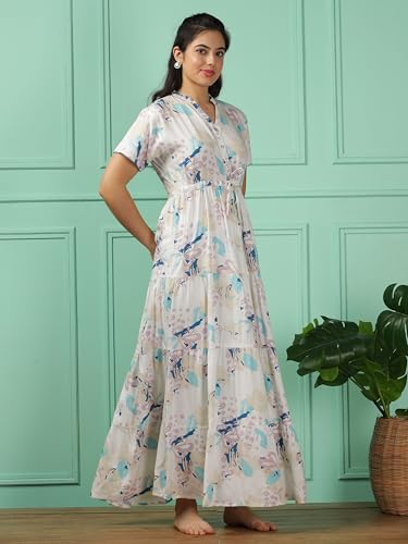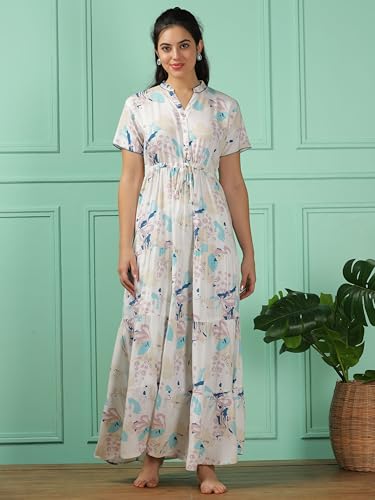 CLOUD SOFT CS4002 Premium Spun Designer Embroidered Nighty for Women |Aline, Full Lenghth Maxi/Nighty Nightgown |Everyday Regular Wear | Pocket on The Two Side