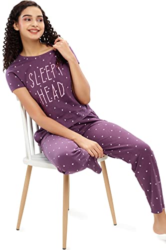 Buy That Trendz Womens Cotton Printed Top and All Over Print Capri Pyjama Set/Pajama Night Suit Set/Sleep wear Set/Loungewear Set Cool Cat Navy Smile Yellow Small Combo Pack of 2