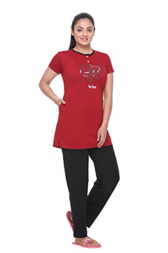 LOTIK Women's Cotton Smile Printed Top & Payjama Half Sleeve Loungewear Nightsuit Set
