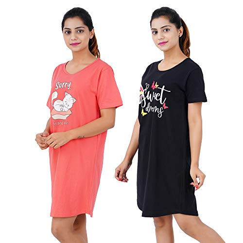 UZARUS Women's Cotton Printed Night Suit Set of Top & Shorts