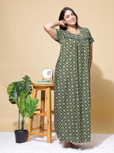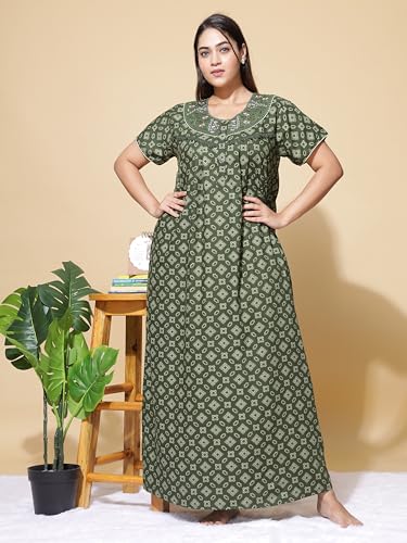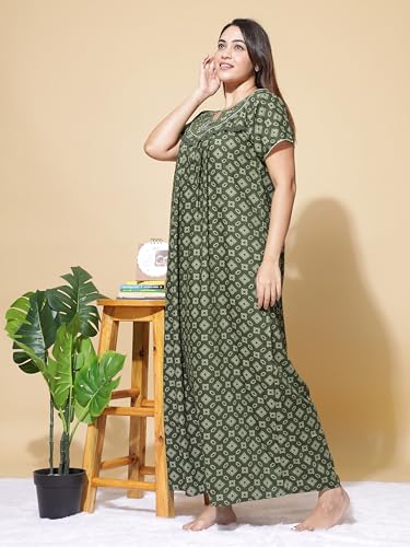 D'Heer Fashion Women's Printed Hosiery Cotton Full Length Maxi Sleeveless Niighty/Night Gown