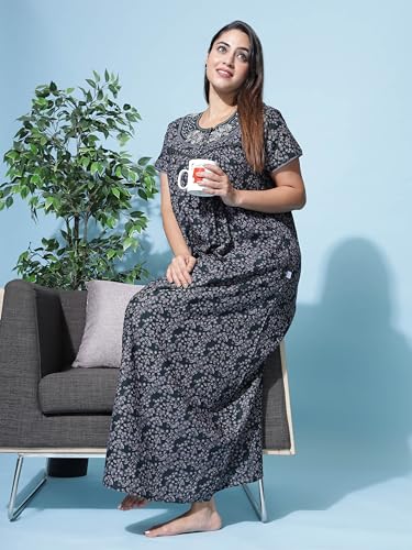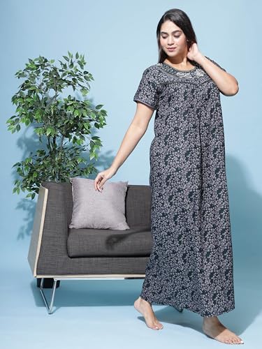 KRYPTIC Womens Pure Cotton Pink Printed Knee Length Nightdress