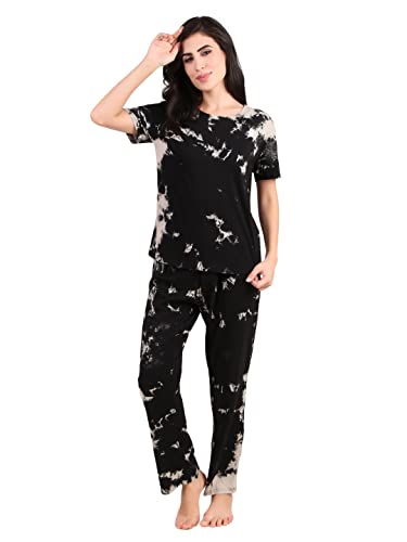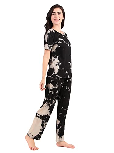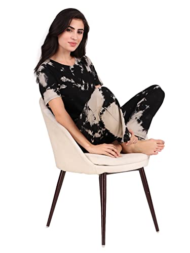 Enamor E048 Quick Dry 4 Way Stretch Antimicrobial Printed Tapered Lounge Pants for Women with Self Fabric Drawstring and Metal Ends