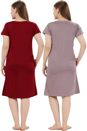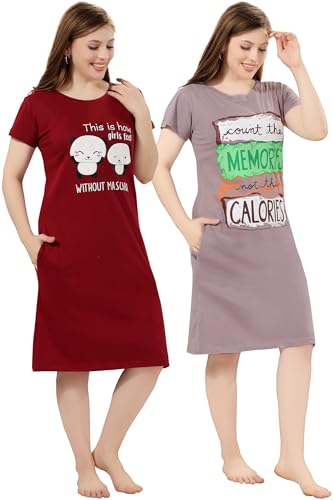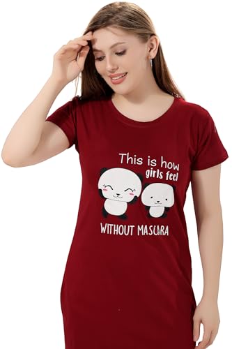 KRYPTIC Womens Pure Cotton Pink Printed Knee Length Nightdress