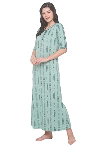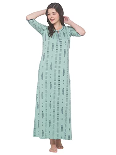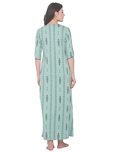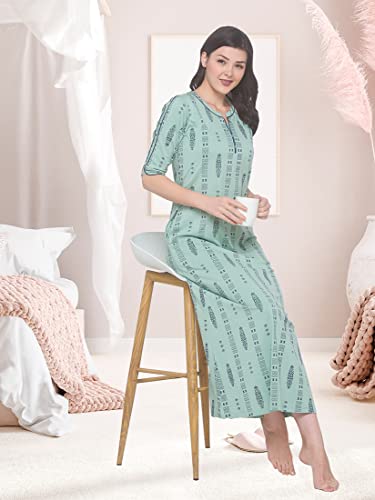 LOTIK Women's Cotton Strip Printed Front-Open Full Sleeve Nightsuit