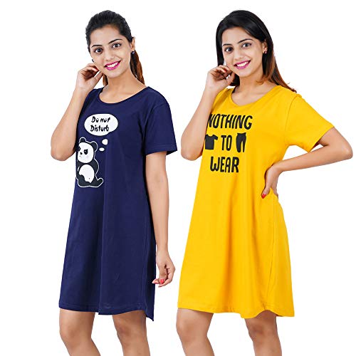 NIHSAMAH Core Style Cotton Night Gown for Women — Premium Printed Stylish Long Cotton Nighty | Comfortable & Fancy Sleepwear, Nightwear, Maxi