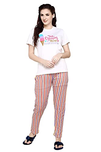 DZZO Cotton Night Suit for Women Girls | Women's Cotton Printed Capri & Top Night Suit Set Pyjama Set Sleepwear Nightwear Nightdress Loungewear