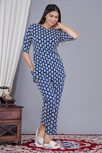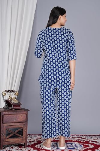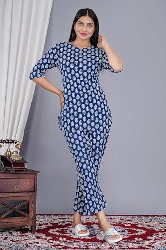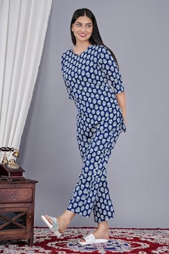 anubhutee Women's Cotton Floral Printed Straight Night Suit Set with Top & Pyjamas