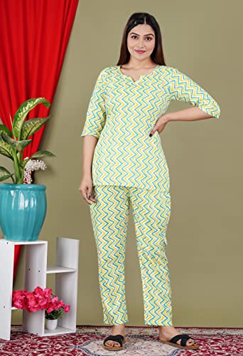 kasya Green Floral Cotton Nightgown with Lace | Cotton Nighty for Women with Pockets | Premium Flower Printed Nightgown | Comfortable Maxi Dress/Sleepwear/Nightwear