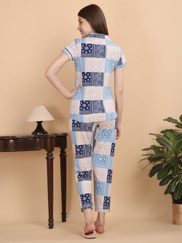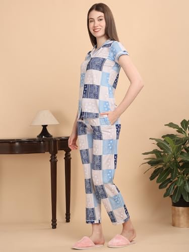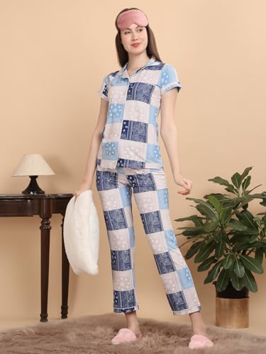 ZEYO Women's Cotton Heart Printed Night Suit set of Shirt & Pajama Set 5152