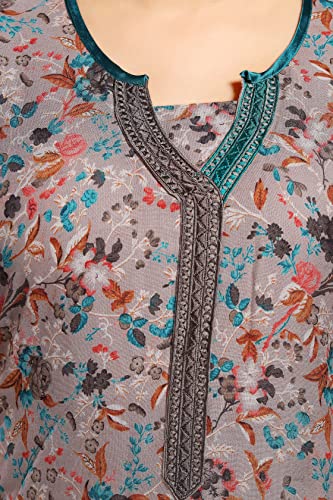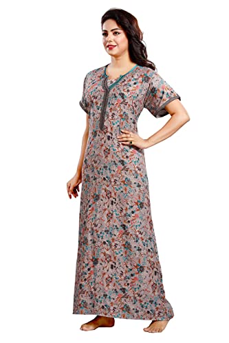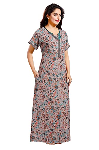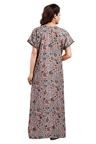 kasya Cotton Nighty for Women with Pockets | Premium Beige Printed Long Cotton Night Gown | Comfortable Maxi Dress | Fancy Sleepwear/Nightwear/Night Gown