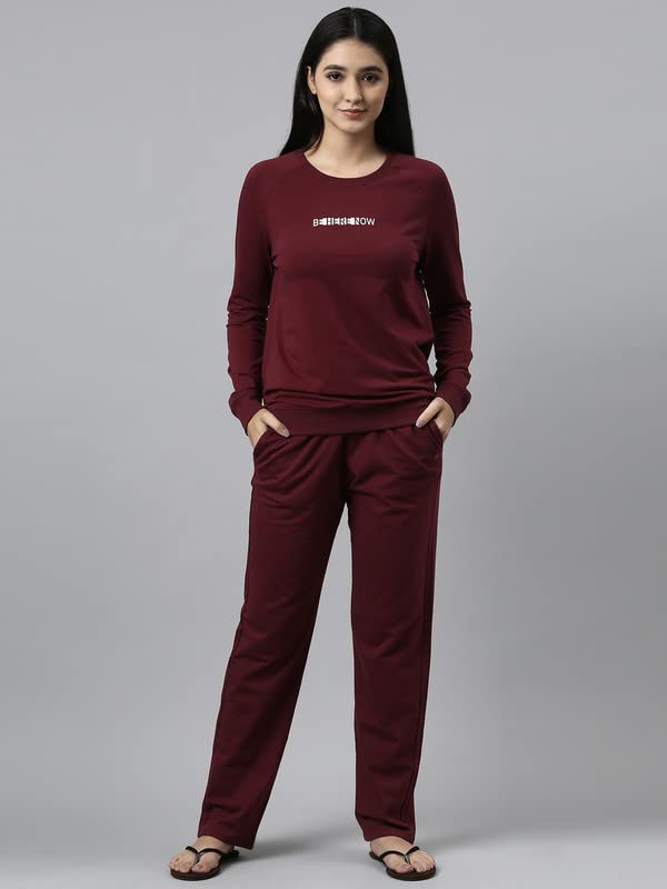 Evolove Women Hosiery Cotton Printed Night Suit, Navy Get Free Eye Mask Inside