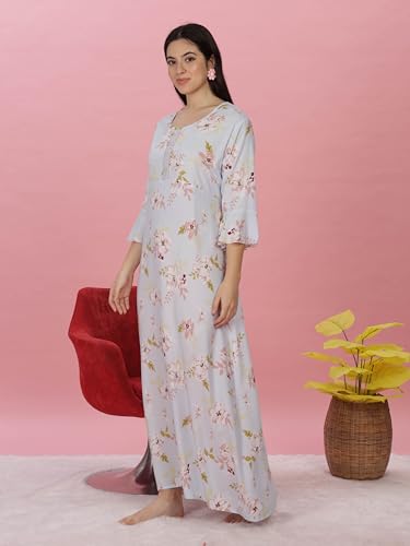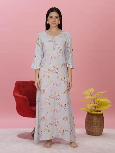 NIHSAMAH Cotton Nighty for Women — Printed Stylish Night Gown, Comfortable Sleepwear Long Nightwear, Maxi