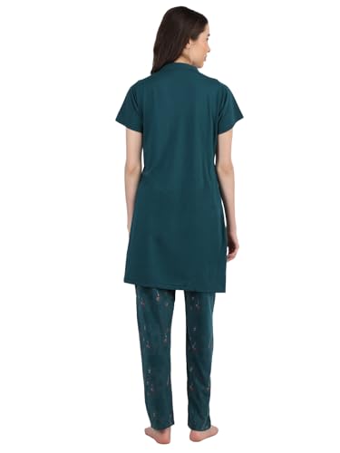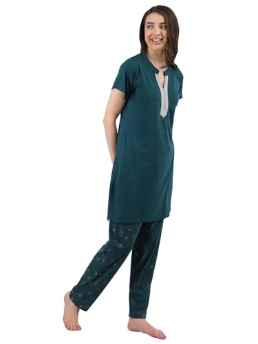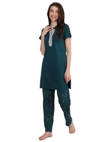 LABEL MY Cotton Women's Bedtime Capri Set | Round Neck, Nightsuit Set| 3/4 Length Pyjama with Side Pockets, Elastic Waist & Drawstring | Lightweight, No Shrinkage