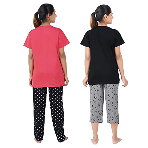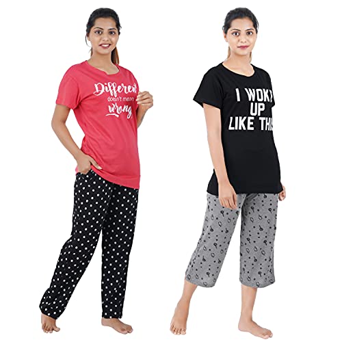 Club A9 Womens Cotton Printed Capri & Top Set,Nightsuit