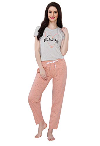 ZEYO Women's Cotton Heart Printed Night Suit set of Shirt & Pajama Set 5152