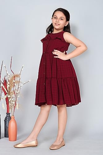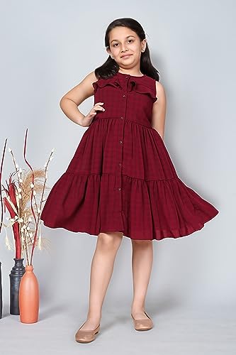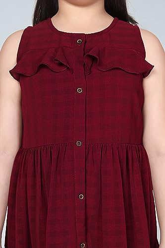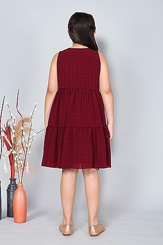 Hopscotch Girls Polyester Polka Dot Print Sleeveless Casual Dress in Red Color