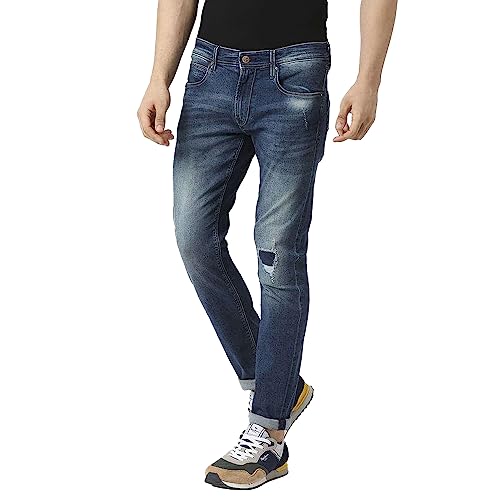 Peter England Men Blue Mid Wash Wash Slim Tapered Fit Jeans