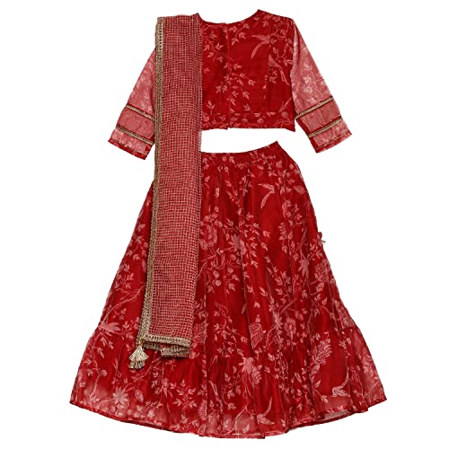 Aarika Girls Ethnic Wear Green Colour Beads Hand Embroidery Silk Lehenga Choli Set
