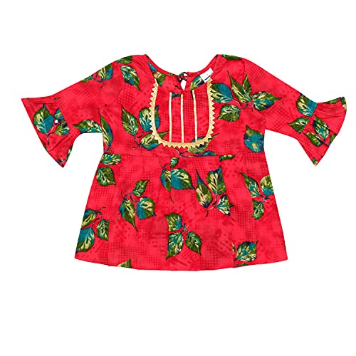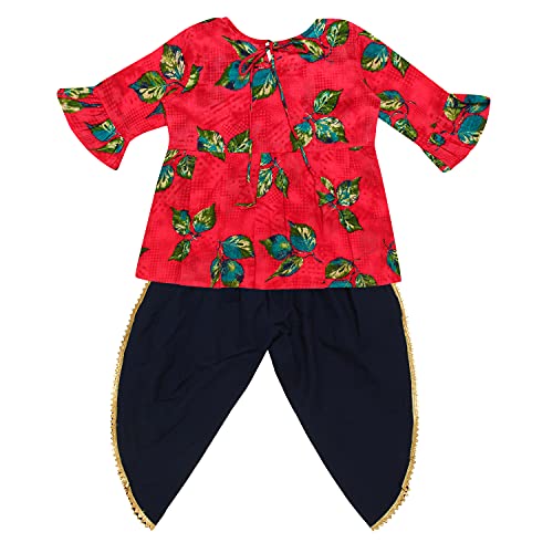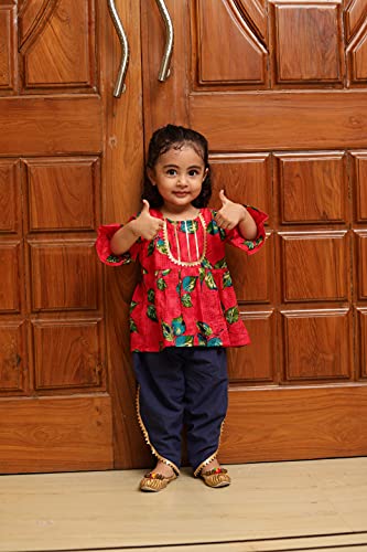 Aarika Girls Ethnic Wear Blue Colour Floral Print With Gota Lace Cotton Kurti Patiala Set