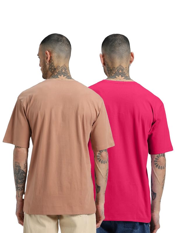 Bewakoof Men's Printed Regular Fit Half Sleeve Round Neck Cotton Jersey T-Shirts (Pack of 2)