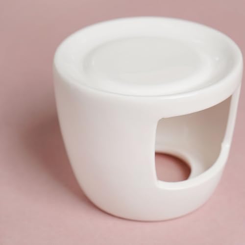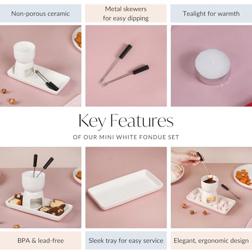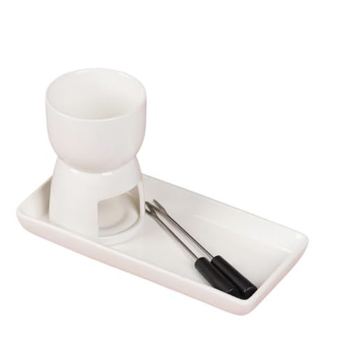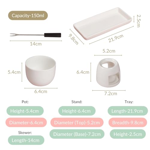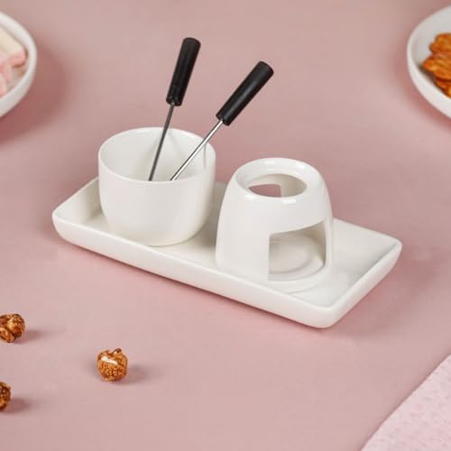 Nestasia White Ceramic Fondue Set with Rustic Wooden Tray, Metal Stand & Stainless Steel Skewers | Perfect for Chocolate, Cheese, and Sauces, Ideal for Romantic Dinners, Christmas, Gifting & Parties
