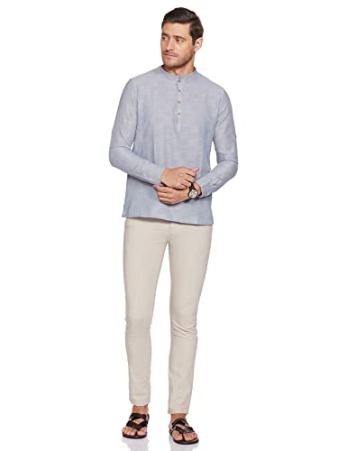 Manyavar Thread Embroidered Side Open Asymmetric Kurta for Men (Kurta Only)