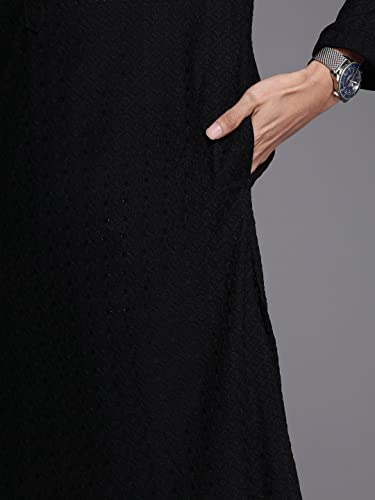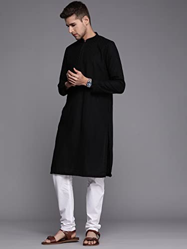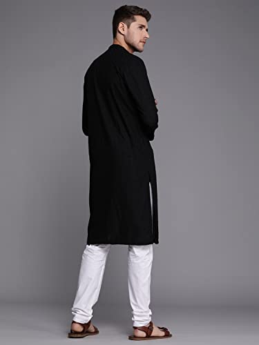 Manyavar Men's Linen Embroidered Neckline Kurta (1pc)