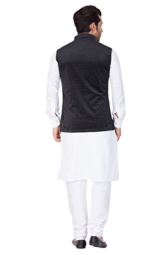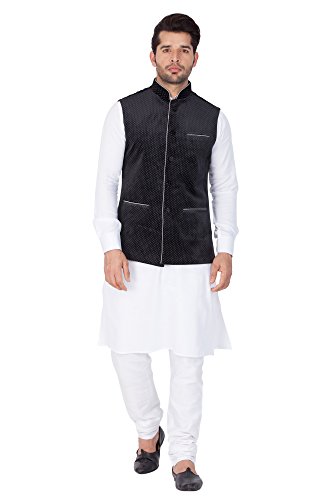 SOJANYA Men's Cotton Silk Kurta and White Pyjama with Designer Nehru Jacket